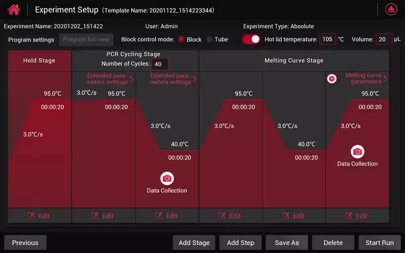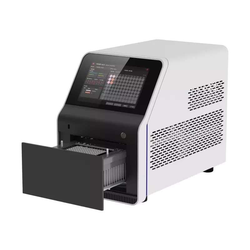 960406 Real-time PCR is a 96 well quantitative fluorescence Real-time PCR System, equipped with a 10.1-inch high-definition color touch screen and built-in analysis software for intuitive operation and analysis. Combining the innovative thermal cycling system, accurate photoelectric detection system and intuitive software, the real-time PCR delivers precise and reproducible experimental results. The device also has two temperature control modes settings which enables you to control either block or tube temperatures.